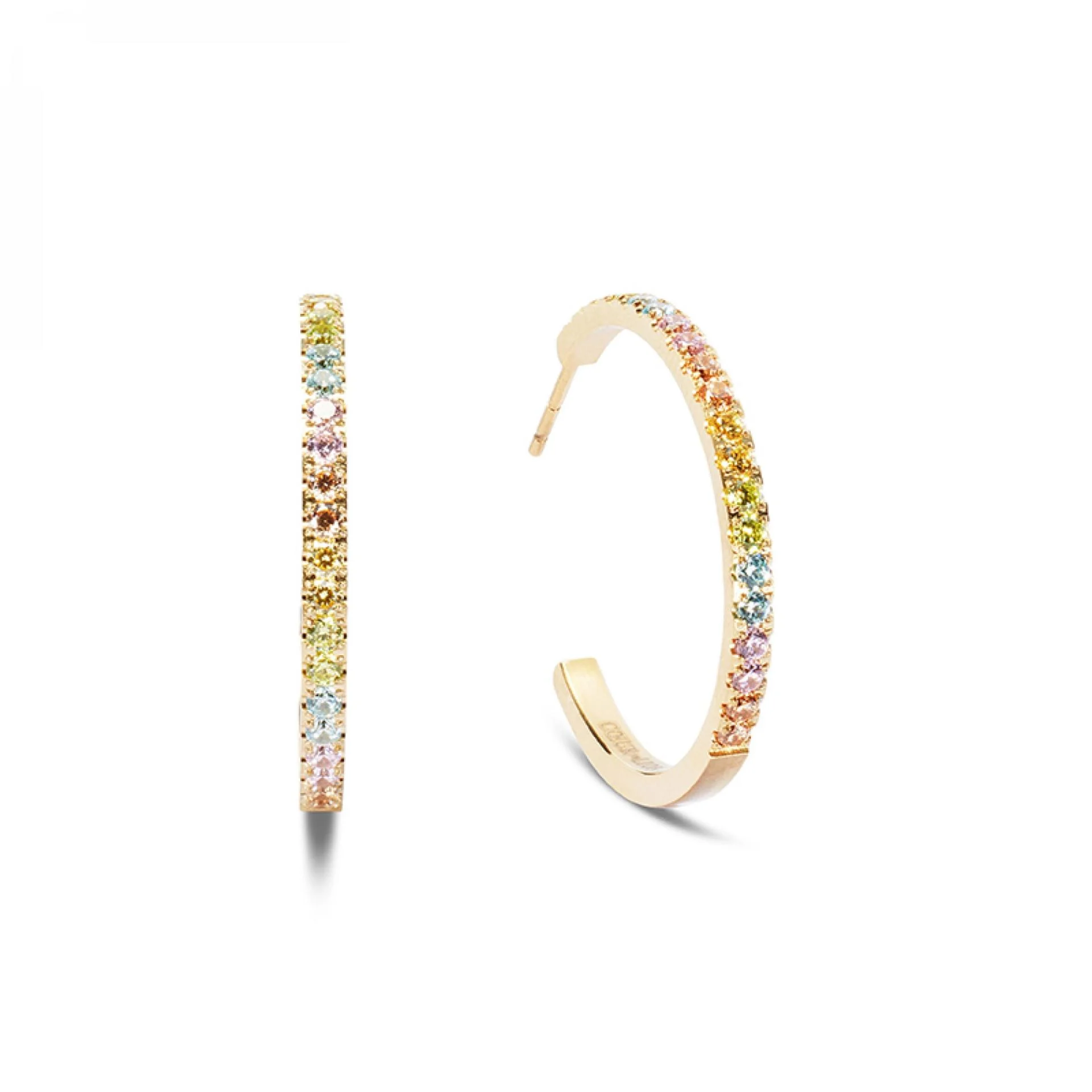 Boucles d'oreilles acier inoxydable dorée style créole avec strass des couleurs
