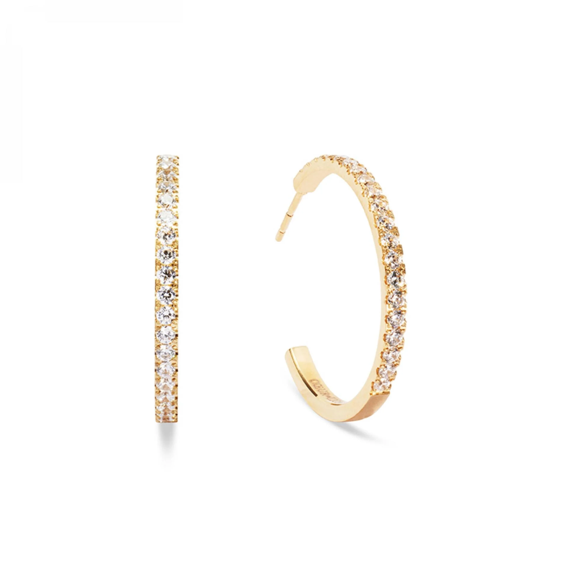 Boucles d'oreilles acier inoxydable dorée style créole avec strass blanc