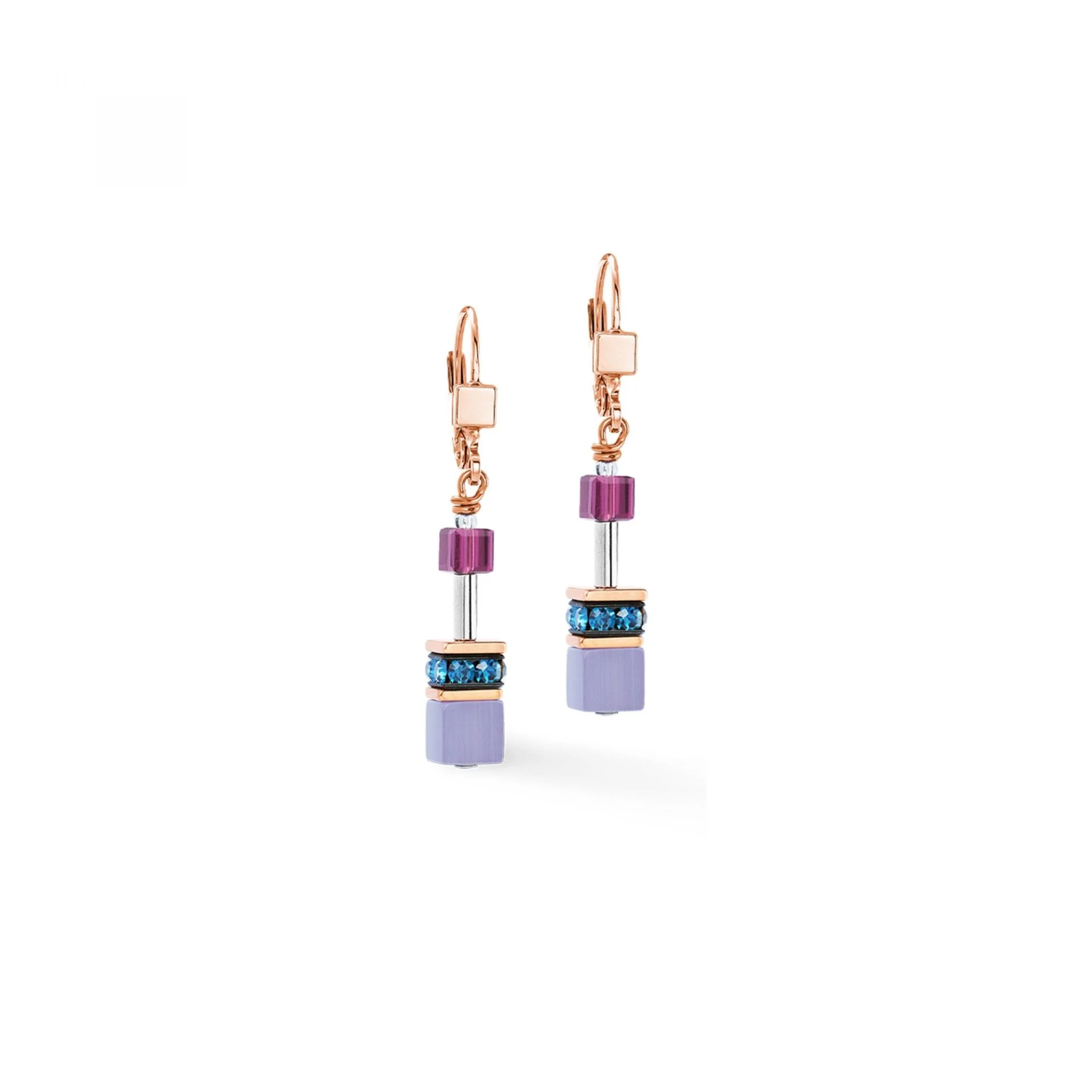 Boucles d'oreilles acier inoxydable rose avec strass oeil de tigres et cristaux de Swarovski