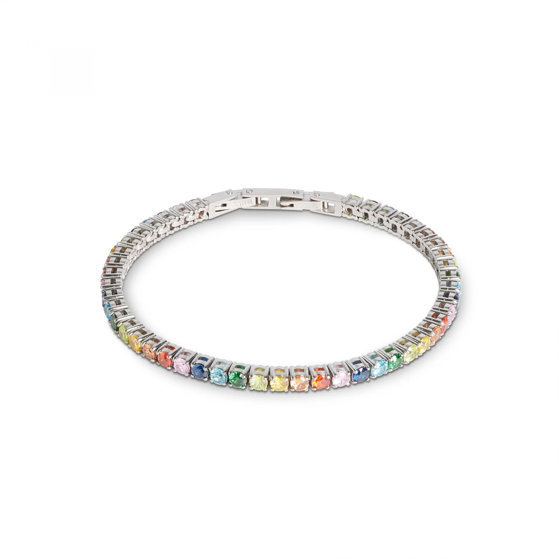Bracelet acier inoxydable semi-rigide avec strass de couleurs