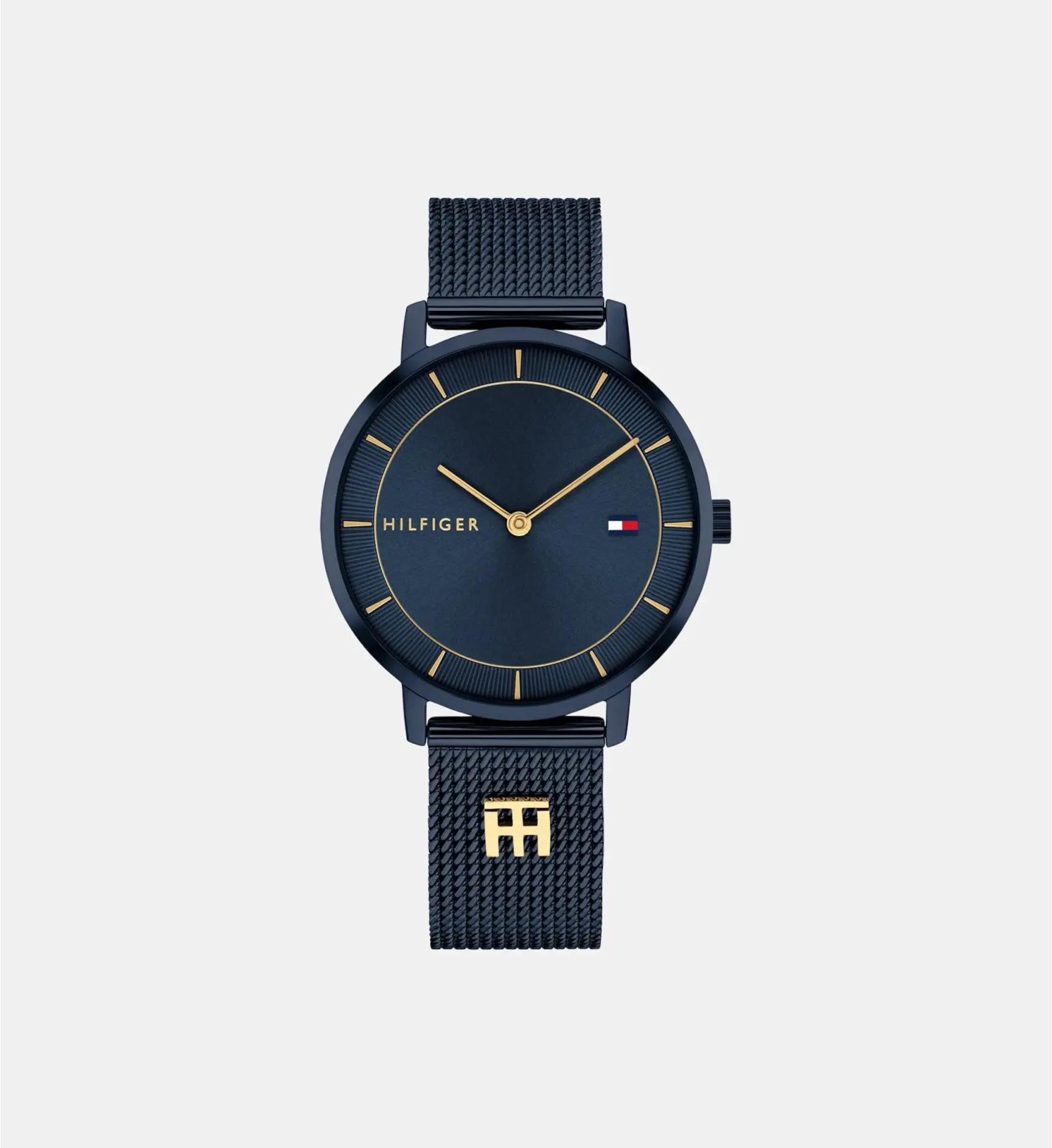 Montre bracelet milanais bleu avec logo Tommy Hilfiger doré , boitier et cadran bleu