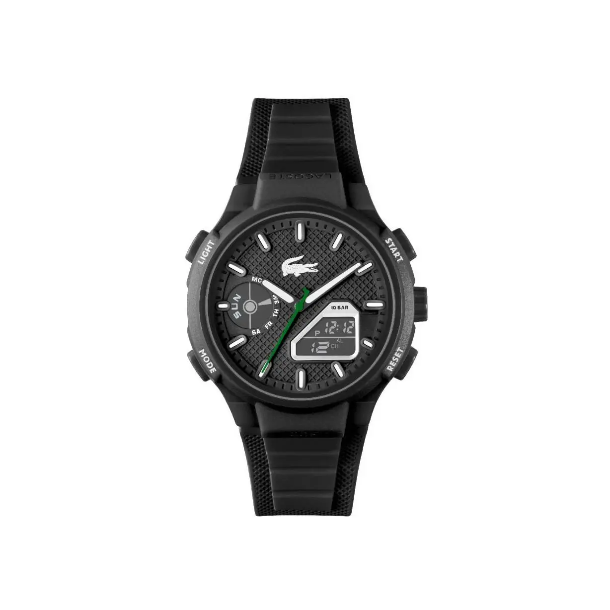 Montre Bracelet noir silicone , boitier noir et blanc, éclairage LED , heure/date, chronomètre, alarmes