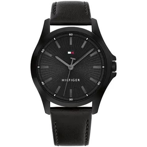 Montre homme cuir noir , boitier noir, cadran noir